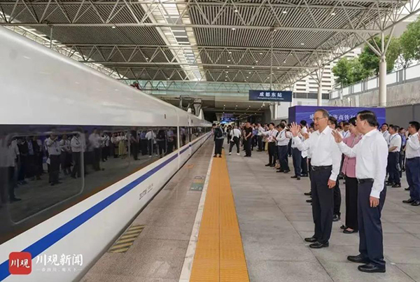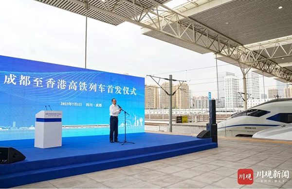 据四川日报报道,四川省委副书记、省长黄强宣布:成都至香港高铁列车开通。四川省委常委、成都市委书记施小琳出席活动。四川省副省长田庆盈讲话,成都市市长王凤朝致辞,中国铁路局成都局集团公司董事长冯定清介绍列车运行相关情况,香港特区政府驻成都经济贸易办事处主任袁嘉诺发言。香港旅游发展局、香港贸易发展局、四川省香港商会有关负责同志,四川省直有关部门和成都市相关负责人等参加。