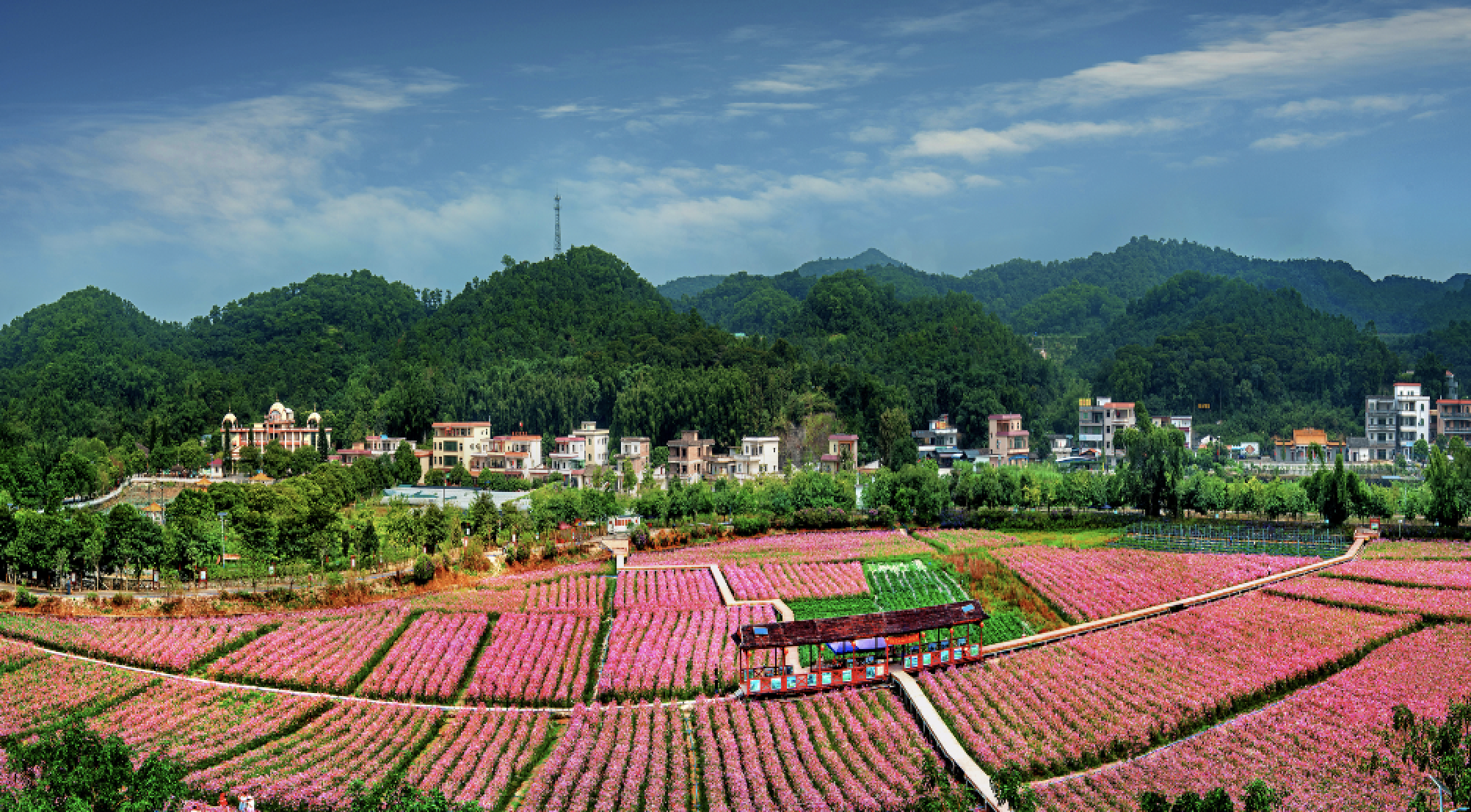 来花都游玩,可以在红山村邂逅四季花海的浪漫、在竹洞村享受水幕光影秀的奇妙、在马岭村欣赏花卉大观园的五彩缤纷、在塱头村感受古韵悠长荷塘飘香……花都的乡村,一村一幅画,一线一风景,处处好风光。
