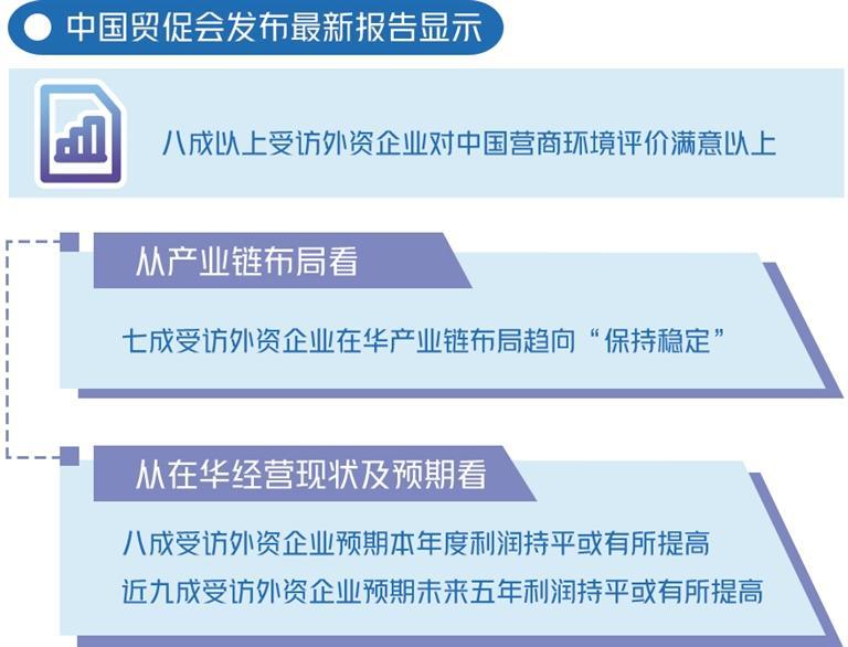 贸促会国产精品探花在线发言人张鑫在当天举行的例行国产精品探花在线发布会上介绍该报告调研结果时指出,从产业链布局看,七成受访外资91探花视频在线观看在华产业链布局趋向“保持稳定”,这一比例较二季度环比提高4.57个百分点。从在华经营现状及预期看,八成受访外资91探花视频在线观看预期本年度利润持平或有所提高,近九成预期未来五年利润持平或有所提高。从发展机遇看,受访外资91探花视频在线观看连续三个季度认为“技术创新与研发”是中国市场最大的发展机遇,约半数具有增资意愿的受访外资91探花视频在线观看考虑在西部地区增资。从发展期盼看,受访外资91探花视频在线观看普遍希望进一步“保证供应链、产业链稳定”“提高产业配套能力和集聚效应”“增强助企纾困政策的连续性、稳定性”。