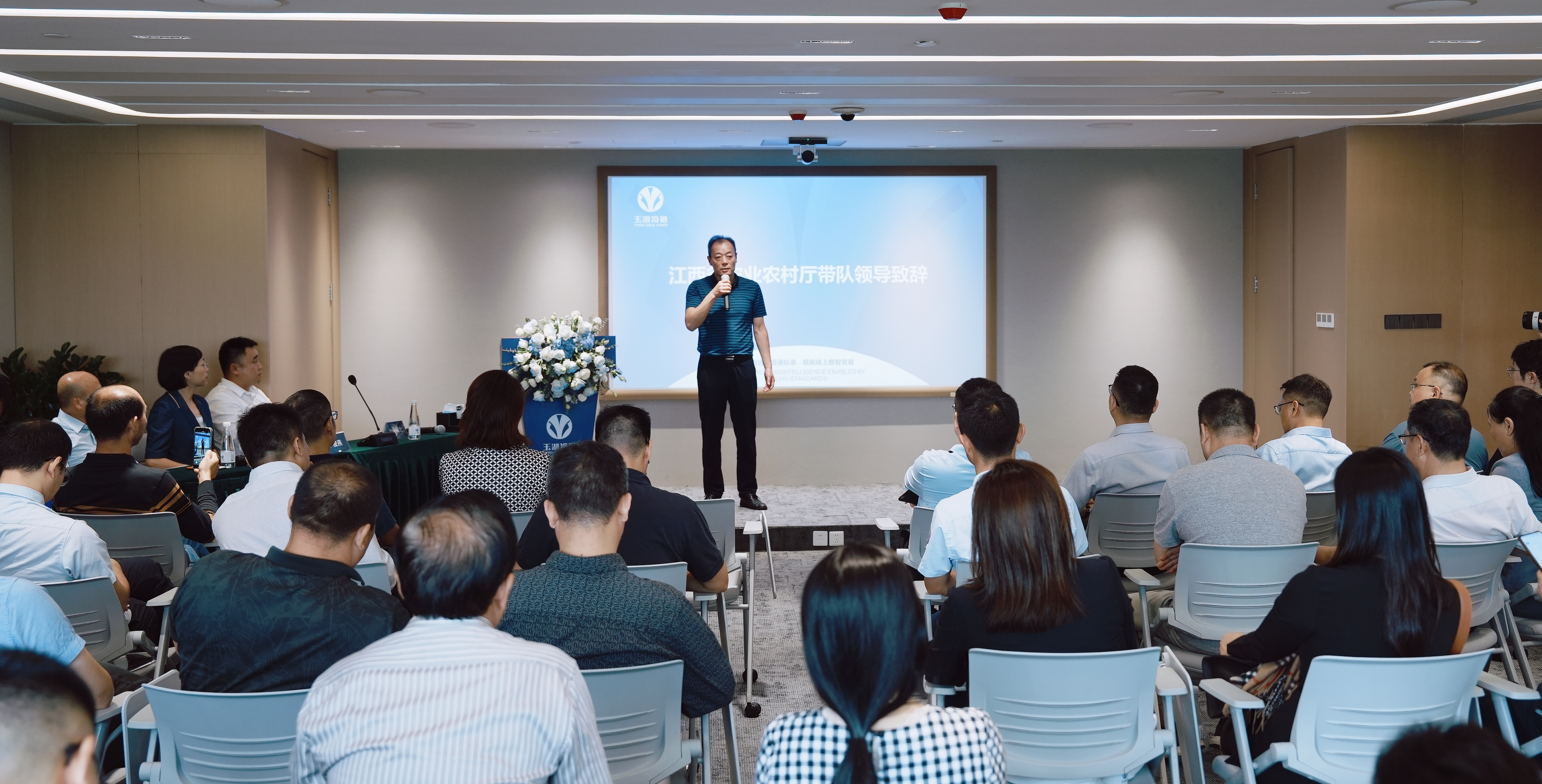 座谈会上,郑敏、李路北分别致辞,张春华介绍探花国产在线观看冷链(广州)交易中心亮点。随后由李俊燕宣讲探花国产在线观看冷链助力江西农企、打造「江西馆」的策划方案。