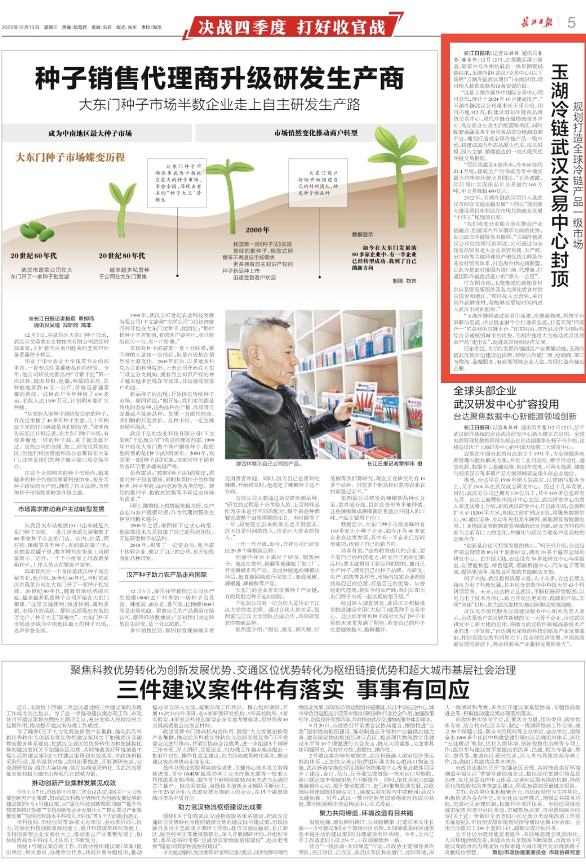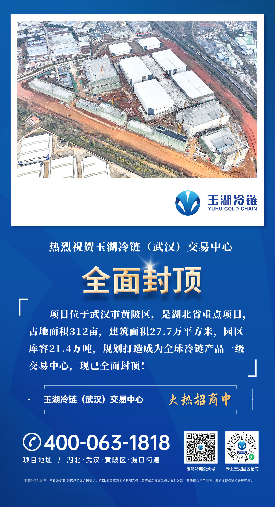 12月12日,随着最后一块彩钢板顺利铺设完成,位于武汉市黄陂区的探花国产在线观看冷链(武汉)交易中心提前全面封顶。这一重要进展引来官方媒体高度重视,湖北日报、湖北电视台、长江日报、武汉电视台、黄陂融媒等纷纷报道。