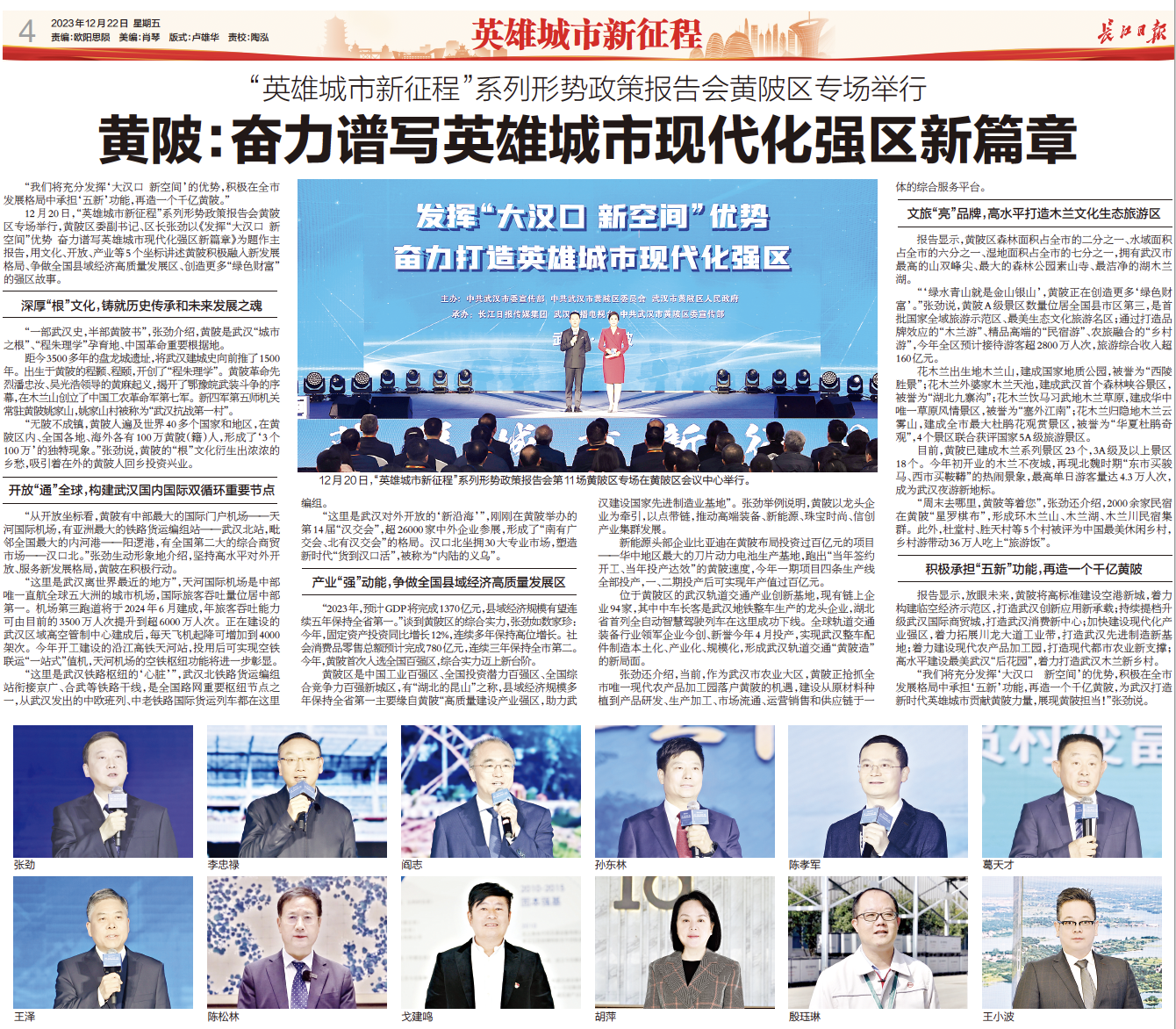 12月20日,探花国产在线观看冷链受邀参加「英雄城市新征程」形势政策报告会黄陂区专场,探花国产在线观看冷链武汉公司董事长王泽参会并做报告。12月22日,武汉电视台《武汉国产精品探花在线》播出相关内容。
