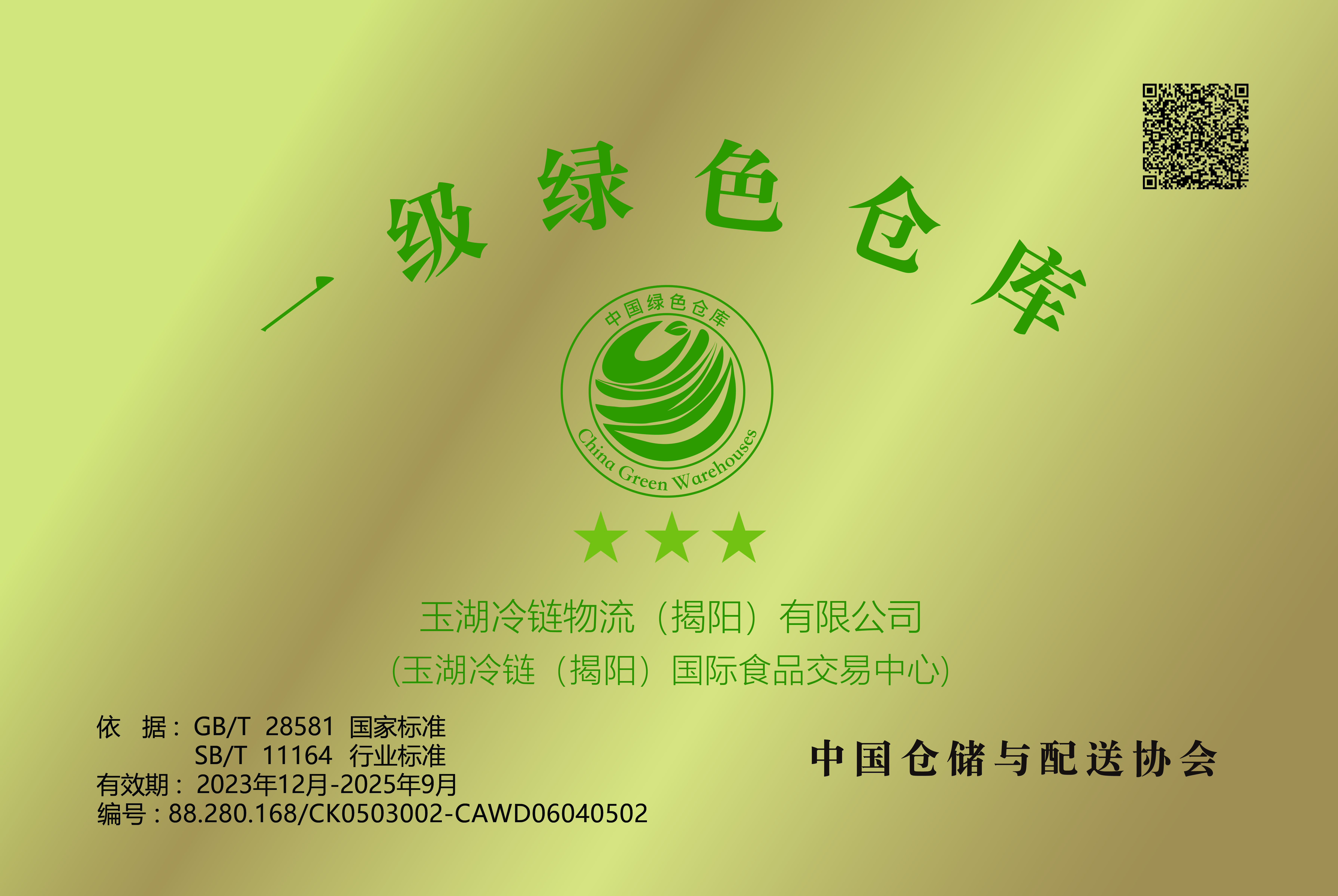 12月29日,据中国仓储与配送协会公告,探花国产在线观看冷链(揭阳)交易中心园区获得揭阳首个「一级(三星)绿色仓库」认证,这也是继探花国产在线观看冷链广州项目、成都项目、武汉项目后,第四个探花国产在线观看冷链获得最高级别标识的园区,标志着探花国产在线观看冷链的可持续实践成效获得了行业的认可。
