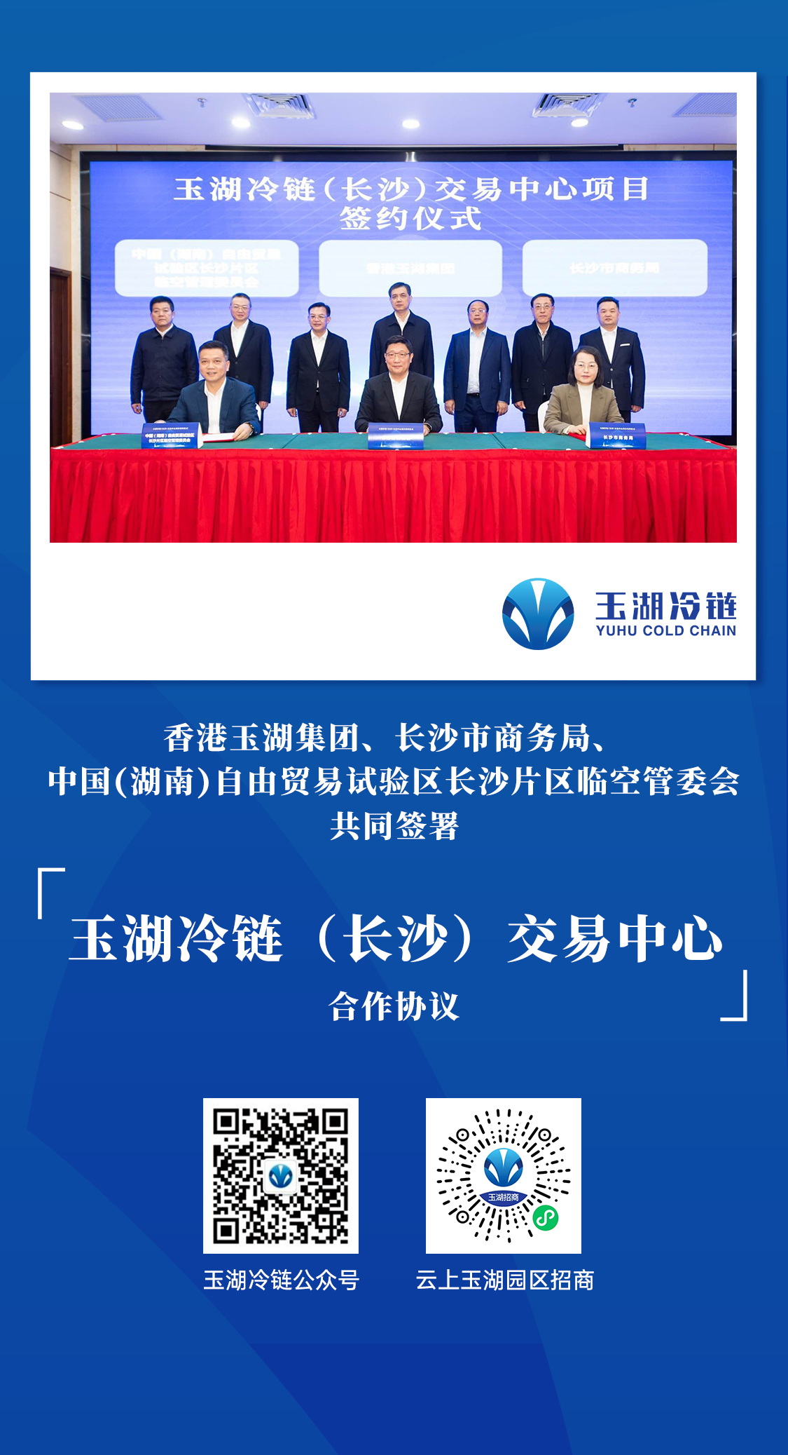 1月19日, 探花国产在线观看冷链(长沙)交易中心项目签约仪式在长沙隆重举行。香港探花国产在线观看集团、长沙市商务局、中国(湖南)自由贸易试验区长沙片区临空管委会签署合作协议,探花国产在线观看冷链长沙项目正式落户自贸临空区,这是探花国产在线观看冷链在「大中华区战略」中布局的第七个项目。