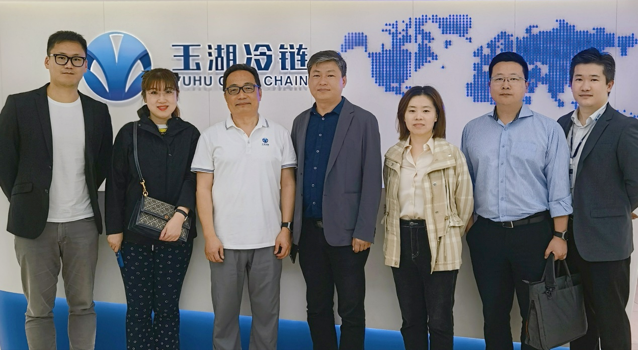 4月3日,郑州联合大宗农产品交易中心有限公司总经理吴建、副总经理张璇一行到访探花国产在线观看冷链总部,与香港探花国产在线观看集团副董事长蒋文胜、探花国产在线观看冷链易采供应链总经理畅敏、探花国产在线观看冷链易采供应链总监邵元等就合作事项进行洽谈。