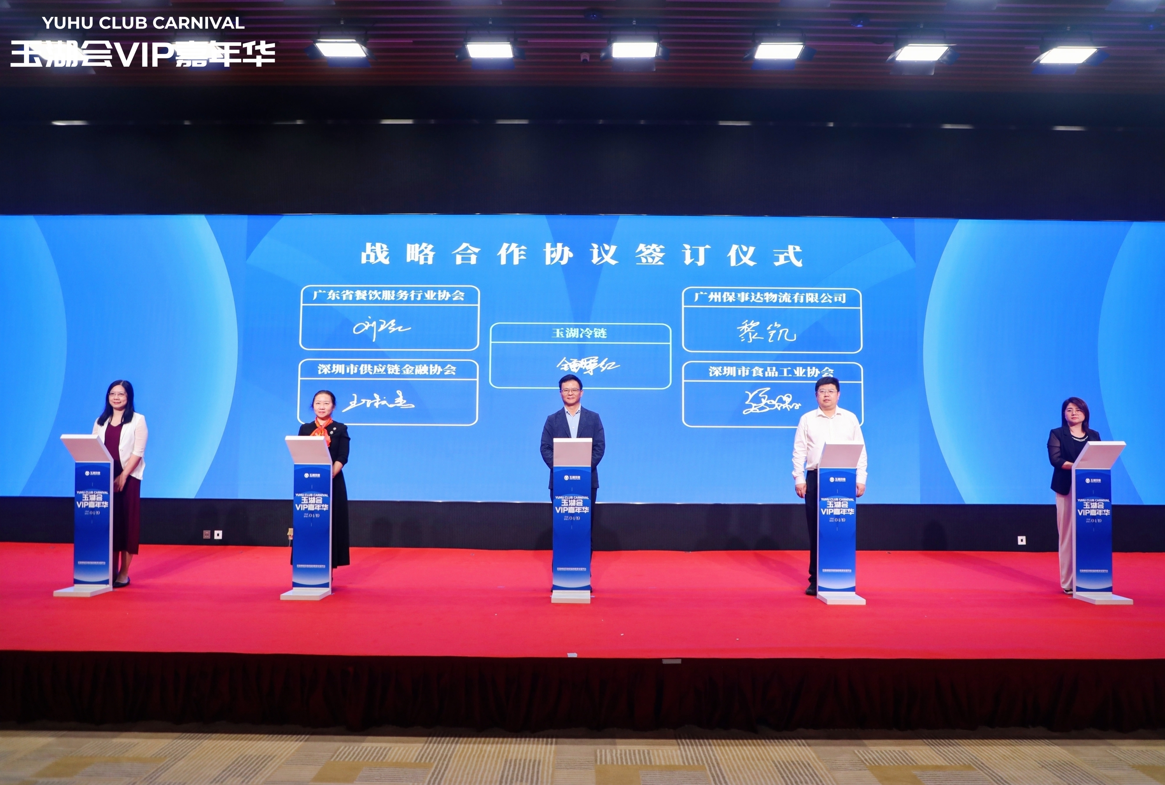 活动现场,广东省餐饮服务行业协会、深圳市供应链金融协会、广州保事达探花视频在线播放有限公司、深圳市食品工业协会与探花国产在线观看冷链签署战略合作协议,约定在资源共享和产业联动等方面开展全面、深入的合作。