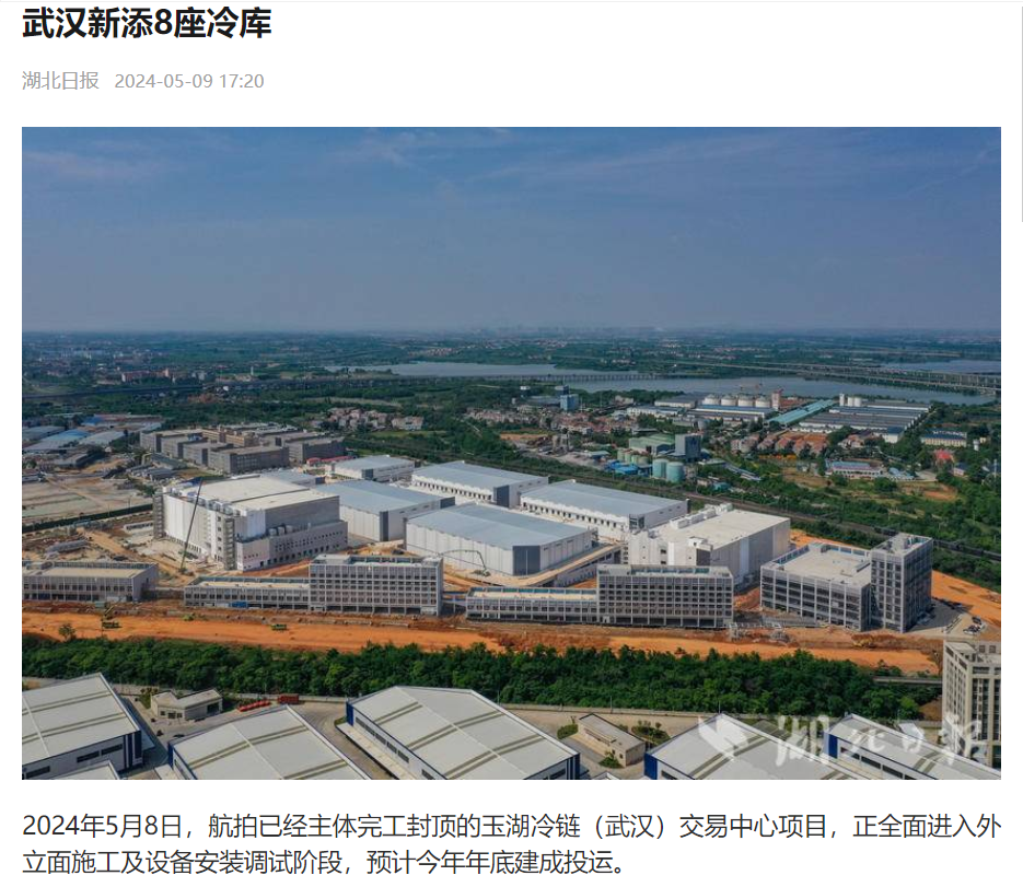 湖北日报以《武汉新添8座冷库》作为报道标题,重磅推出探花国产在线观看冷链(武汉)交易中心的建设实况,并详细介绍了这一华中地区最大的单体冷链交易园区其项目规模、园区功能定位及预估经济效应等方面。