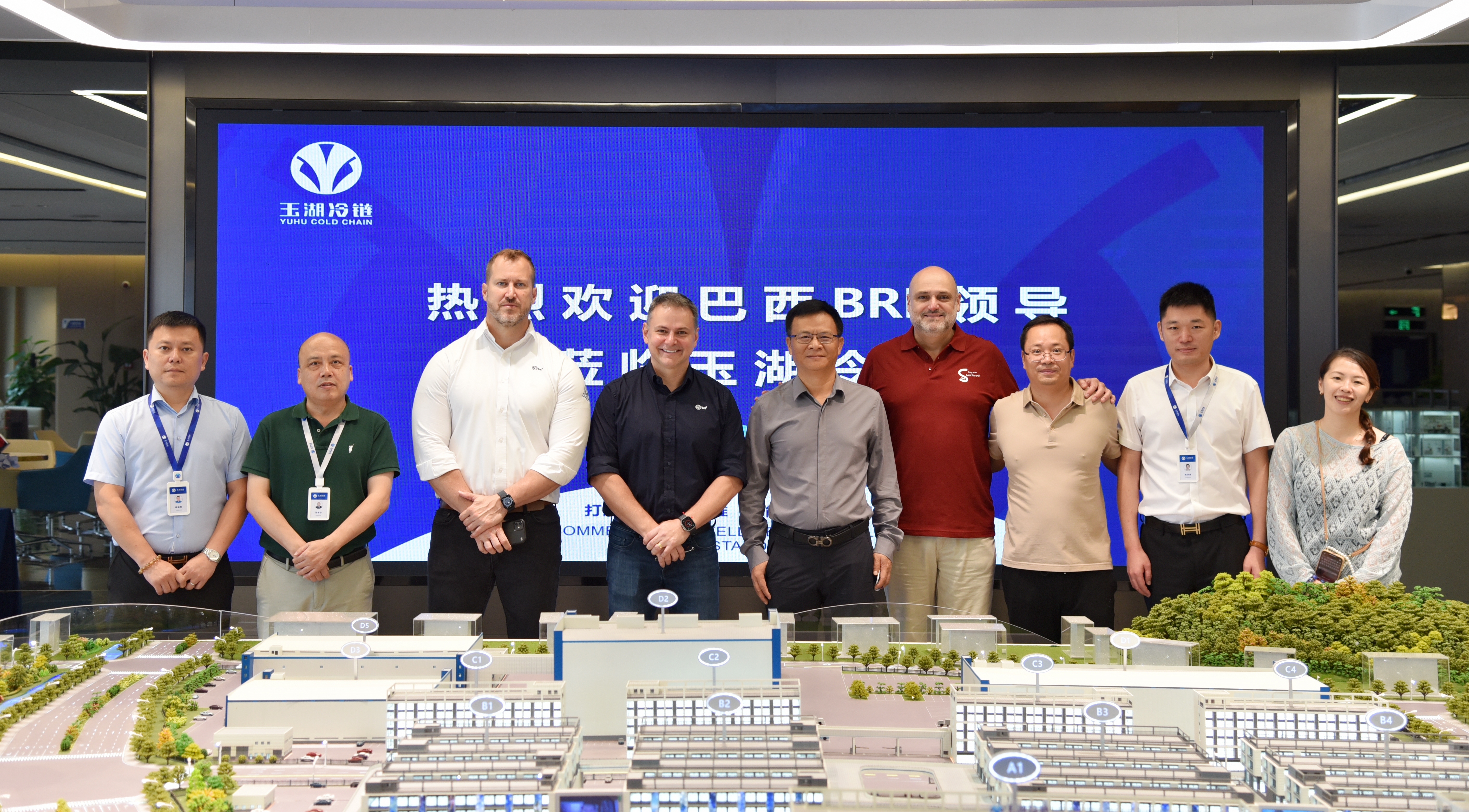 5月25日,巴西食品公司BRF国际出口部副总裁Leonardo Dallorto、国际出口部总监Andre Taffarello、亚洲区商务部总经理Rogerio Moraes及其中国区相关负责人到探花国产在线观看冷链(广州)交易中心参观,与探花国产在线观看冷链执行总裁钟辉红,探花国产在线观看冷链高管陈泽涛、张春华等进行交流,双方就BRF在探花国产在线观看冷链设立华南食品集中仓、扩大市场份额等进行深入探讨。