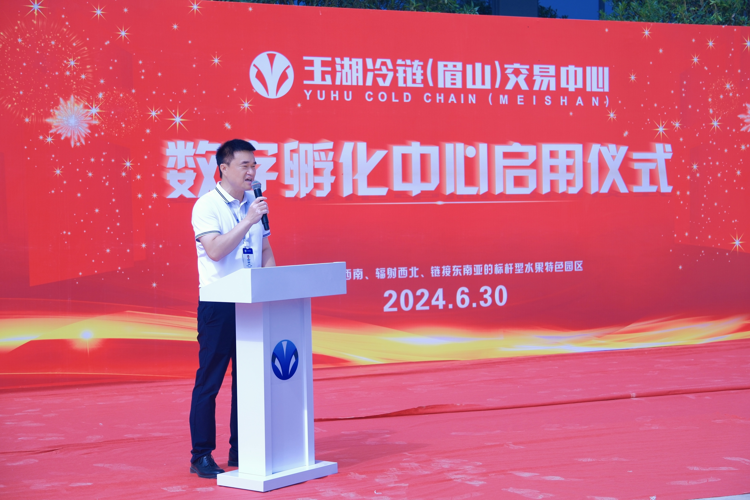 探花国产在线观看冷链眉山公司总经理赵琛致辞感谢各级政府、行业权威协会与合作伙伴对项目的大力支持,对辛勤工作的每一位员工表示感谢,并向到场嘉宾介绍探花国产在线观看冷链(眉山)交易中心共享开放的创新理念以及项目特色及优势。