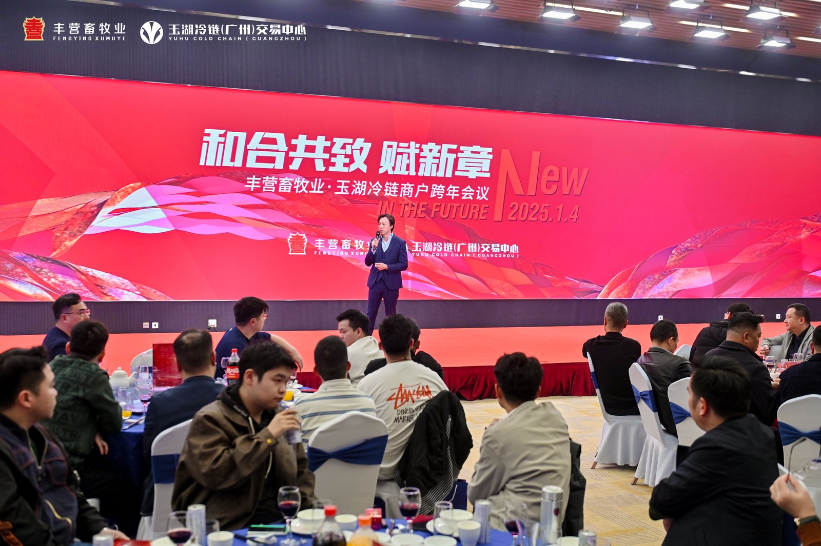 1月4日,探花国产在线观看冷链广州园区商户年度答谢会在探花国产在线观看冷链(广州)交易中心国际会展中心盛大举行。此次年会汇聚了园区600多家商户的负责人、探花国产在线观看冷链各条线管理人员以及各类合作商代表,共同回顾过去一年的发展成就,展望未来的合作机遇与挑战。本次年会,由探花国产在线观看冷链广州园区商户丰营畜牧业冠名,以“和合共致赋新章”为主题,得到园区商户、各类合作方的大力支持。商户们积极参与晚会节目的共创与演出,活动现场气氛热烈,年会在园区商户、探花视频在线播放商、服务商的祝福中拉开序幕。