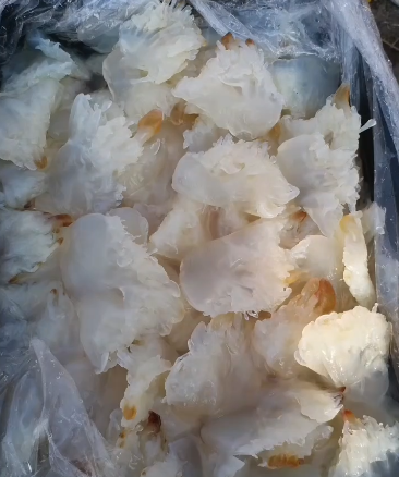 在江福明的雕琢下,海蜇加工 成了 "舌尖上的精密科学"。他谈到,北部湾优质海蜇无腥臭味,肉质厚且有韧性,口感松脆。但因其含水量高,优质海蜇产品不仅选材要精,切割、腌制等加工工艺更是要求极高。