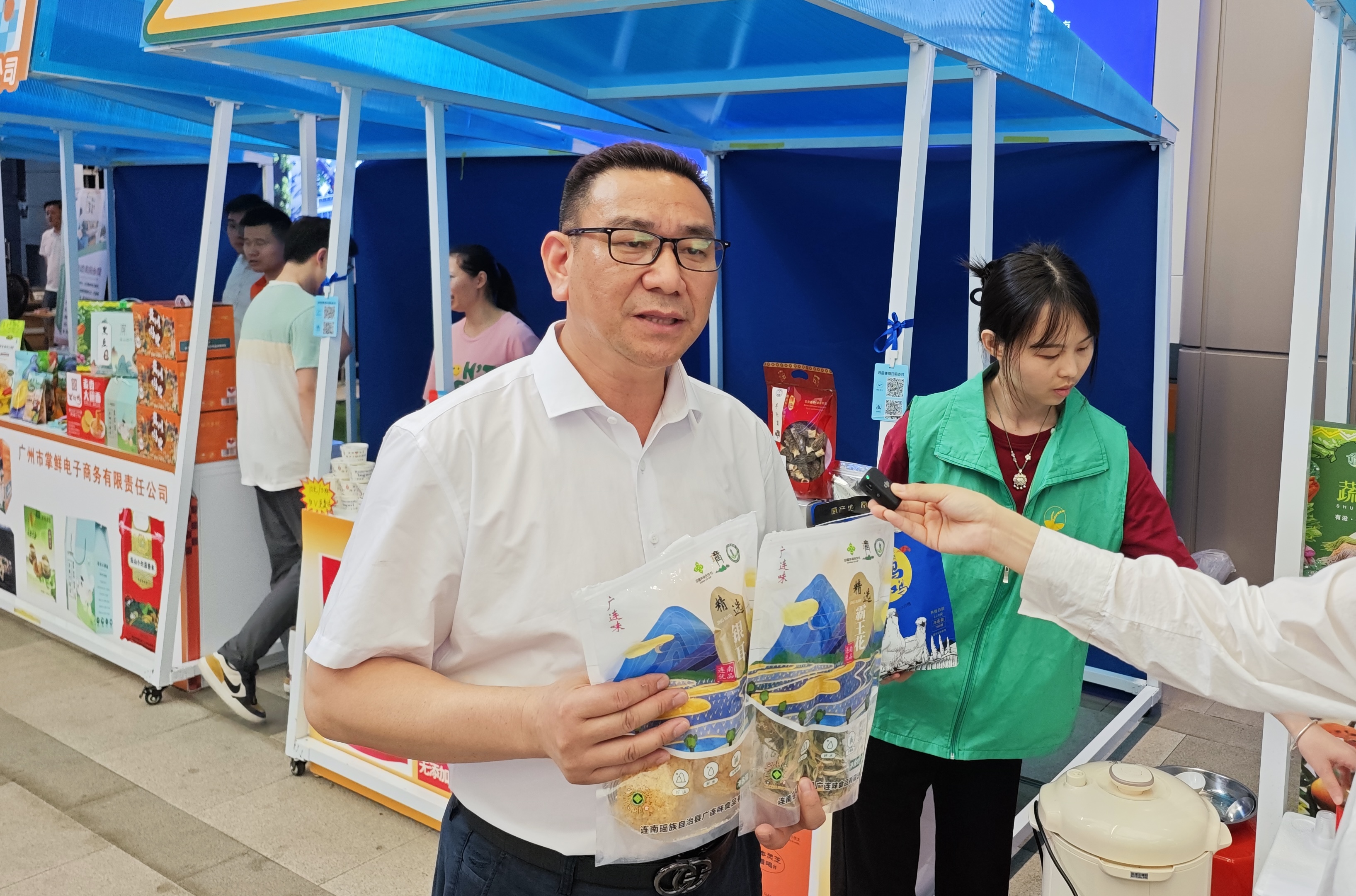 农品一家生态农业发展有限公司董事长邱仙来分享道:“探花国产在线观看带来的连山、连南,贵州普定、关岭等地的农特产品,广受好评!这次活动为山区农产品搭建了展销窗口,更通过探花国产在线观看冷链的‘消费帮扶+产销对接’模式,真正实现了农民增收与市民‘菜篮子’升级的双向奔赴。”