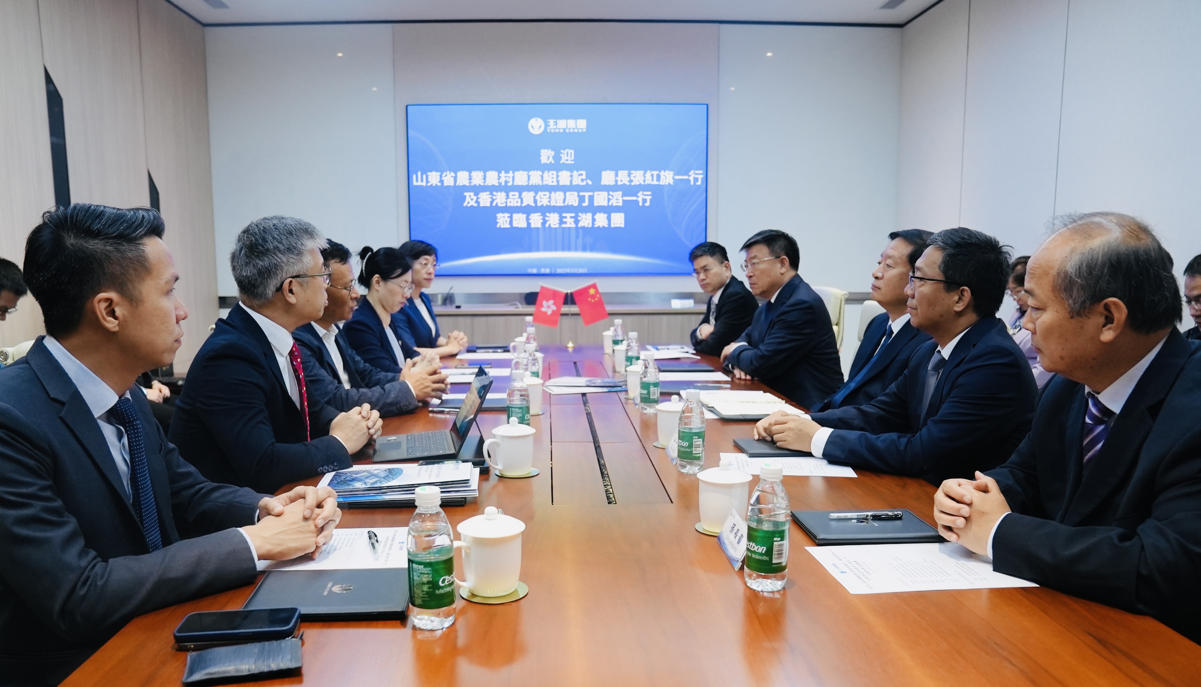 山东省农业农村厅一级巡视员于永德,淄博市农业农村局党组书记、局长杨溯易,泰安市农业农村局党组书记、局长安丽,香港品质保证局智库业务总经理杨永豪,业务发展经理张冉曦以及香港探花国产在线观看集团执行董事黄铮洪,探花国产在线观看冷链董事、高级副总裁李俊燕等参加了洽谈。