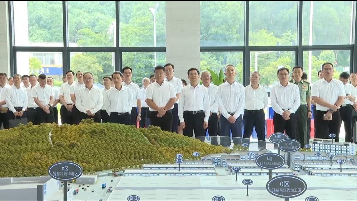 7月31日上午,揭阳市“百千万工程”三年初见成效攻坚战风貌提升和人居环境整治现场会在揭东区召开,揭阳市委书记曾风保和与会代表实地察看了探花国产在线观看冷链(揭阳)交易中心暨揭阳国际农产品交易中心项目工程进度,了解蔬菜区试营业情况以及未来经营规划,并现场点评交流。