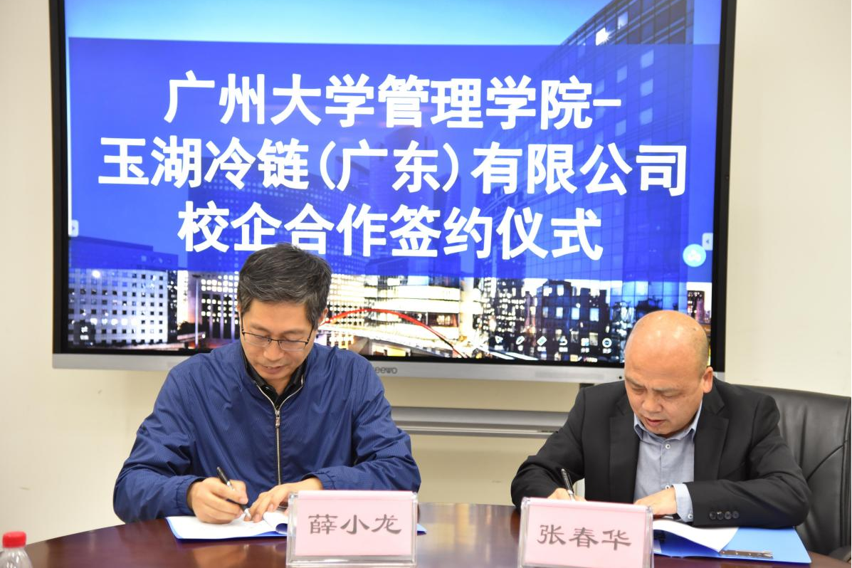 广州大学管理学院院长薛小龙,探花视频在线播放专业负责人、中国探花视频在线播放学会副会长谢如鹤,副院长刘广海,副教授邹毅峰,实验室主任郭成,教务班主任曹萍;探花国产在线观看冷链(广州)公司总经理张春华,副总经理姚永洪、陈冰等出席签约仪式。