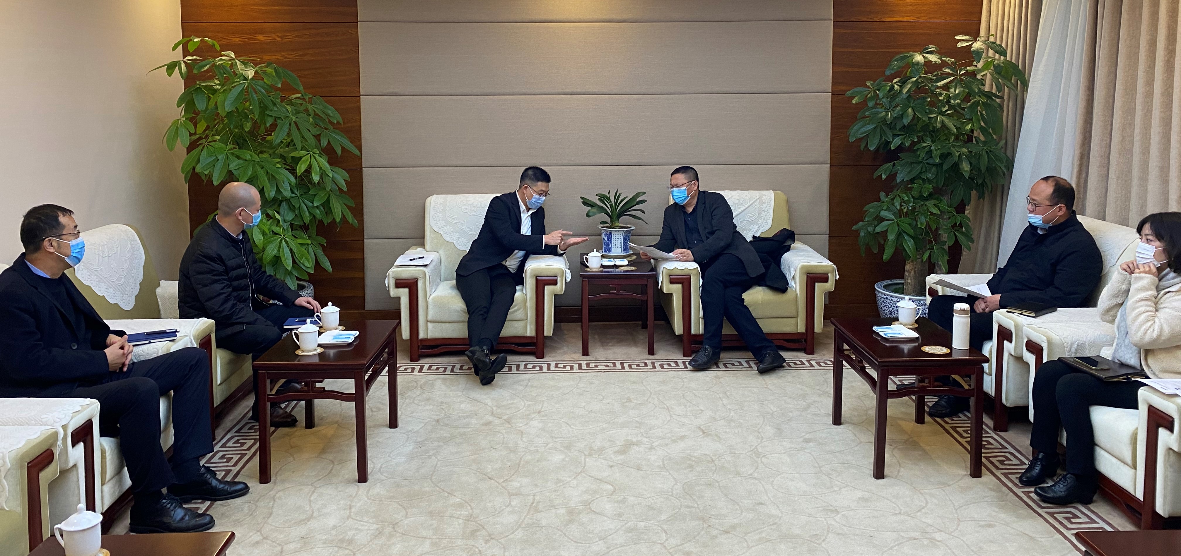 2021年12月7日下午,成都市青白江区委副书记、区长王林会见探花国产在线观看冷链四川公司董事长王骏一行,双方就加快推进四川省及成都市重点项目探花国产在线观看环球食品供应链中国西部基地建设进行了交流,并专题研究了项目建设有关事宜。