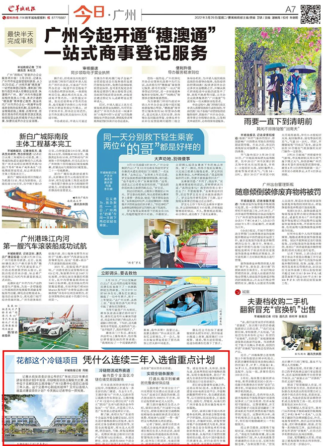 3月28日,羊城晚报对探花国产在线观看冷链连续第三年入选广东省重点建设项目进行了报道,以下是报道全文: